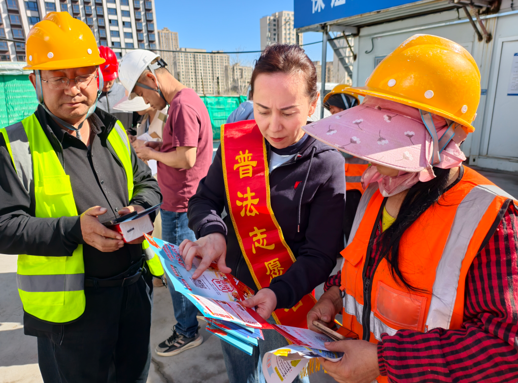 4月8日,新疆烏魯木齊經(jīng)開區(qū)(頭屯河區(qū))司法局白鳥湖司法所聯(lián)合白鳥湖街道工會、紅巖社區(qū),走進轄區(qū)某工地開展普法惠民服務(wù)活動。活動現(xiàn)場,司法所工作人員與特邀律師通過“擺攤設(shè)點”、發(fā)放法治宣傳折頁、現(xiàn)場答疑解惑等形式,向務(wù)工人員細致講解了勞動合同簽訂、工資支付保障、工傷認定維權(quán)等與切身利益緊密相關(guān)的法律知識,提升一線勞動者的獲得感、幸福感、安全感。