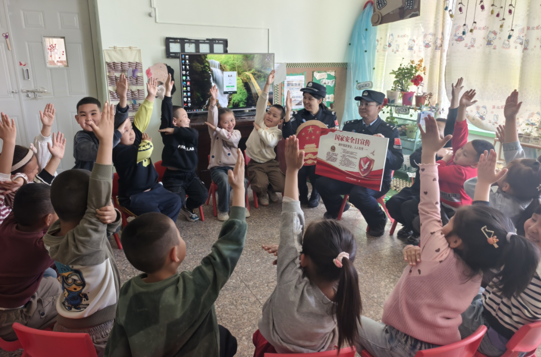 在第十一個全民國家安全教育日來臨之際,4月13日,新疆阿勒泰邊境管理支隊沖乎爾邊境派出所民警走進轄區(qū)孔吐汗村幼兒園,開展“國家安全 共‘童’守護”普法宣傳活動。民警化身“安全老師”,通過展示卡通圖片、播放動畫短片、情景互動等形式,引導孩子們樹立國家安全意識。