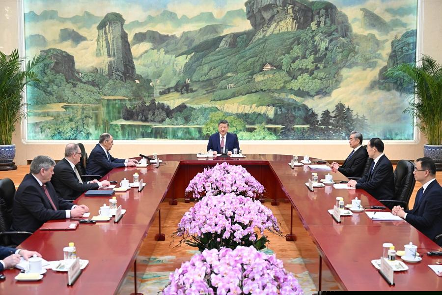 4月15日上午,國家主席習(xí)近平在北京人民大會(huì)堂會(huì)見俄羅斯外長拉夫羅夫。新華社記者 燕雁 攝