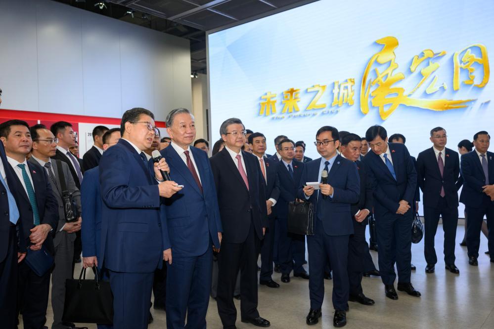 4月14日上午,越共中央總書(shū)記、國(guó)家主席蘇林開(kāi)始對(duì)中國(guó)進(jìn)行為期四天的國(guó)事訪(fǎng)問(wèn)。抵達(dá)北京后,他隨即乘高鐵前往雄安新區(qū)參訪(fǎng)。這是蘇林在雄安新區(qū)啟動(dòng)區(qū)綜合服務(wù)中心參訪(fǎng)。 新華社記者 金良快 攝