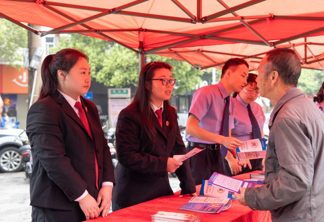 圖為吉安縣人民法院法官向群眾普及國家安全知識。