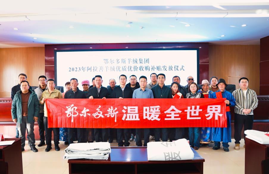 圖為鄂爾多斯羊絨集團(tuán)阿拉善羊絨優(yōu)質(zhì)優(yōu)價(jià)收購(gòu)補(bǔ)貼發(fā)放儀式。