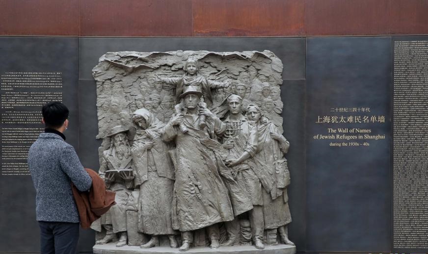 12月8日,觀眾在上海猶太難民紀(jì)念館廣場參觀上海猶太難民名單墻。