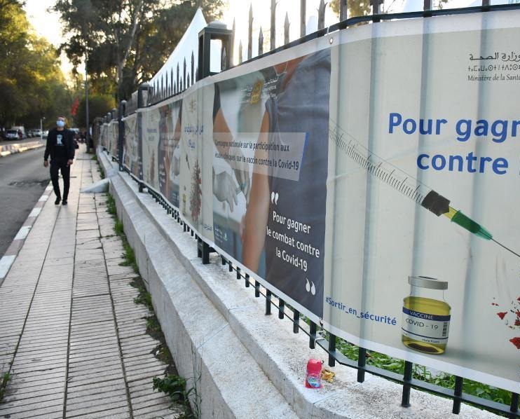 12月15日,一名男子走過摩洛哥拉巴特街頭一處關(guān)于新冠疫苗的宣傳海報。
