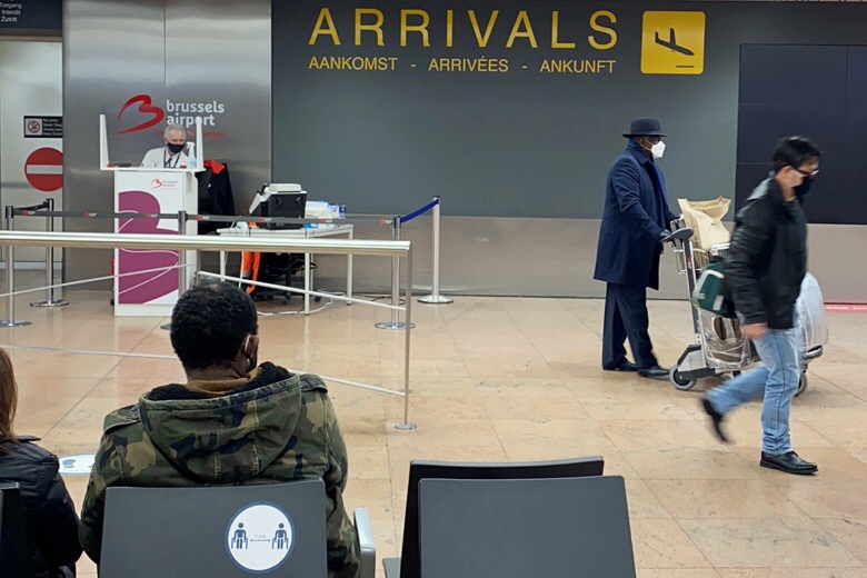 12月21日,旅客在比利時布魯塞爾機場到達(dá)廳行走。