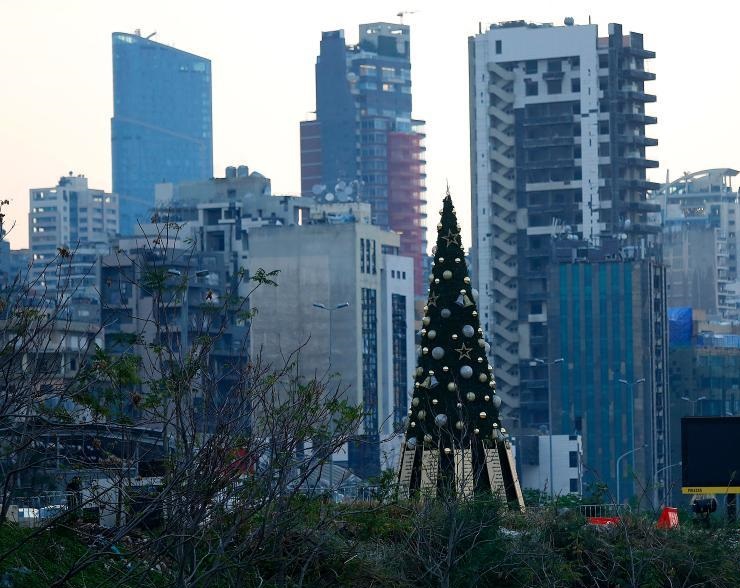 12月22日,黎巴嫩貝魯特港口爆炸廢墟附近一棵圣誕樹(shù)上面掛著爆炸中死難者的名字。新華社發(fā)(比拉爾·賈維希攝)