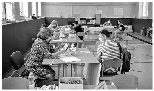 圖為2020年7月1日,俄選民在首都莫斯科一處投票站登記注冊并就憲法修正案草案進(jìn)行投票。 新華社發(fā)