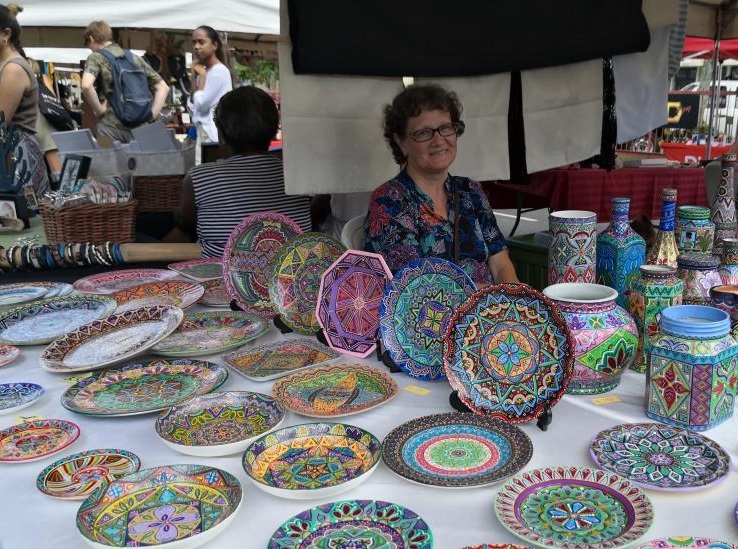 這是1月17日在斐濟(jì)首都蘇瓦的周末市場(chǎng)上拍攝的一名賣手工藝品的攤販。