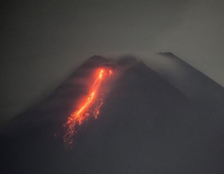 這是1月19日在印度尼西亞日惹拍攝的噴發(fā)的默拉皮火山。新華社發(fā)(蘇普里揚(yáng)托攝)