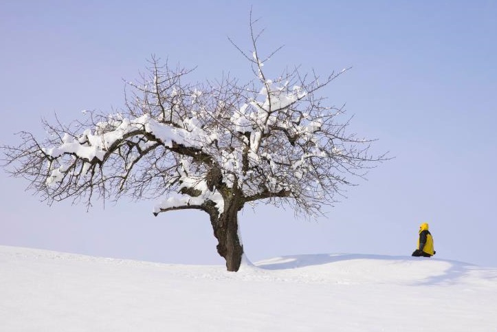 1月16日,在法國(guó)上萊茵省弗雷朗,一名男子走在雪后的山坡上。新華社發(fā)(亞基·內(nèi)熱朗攝)
