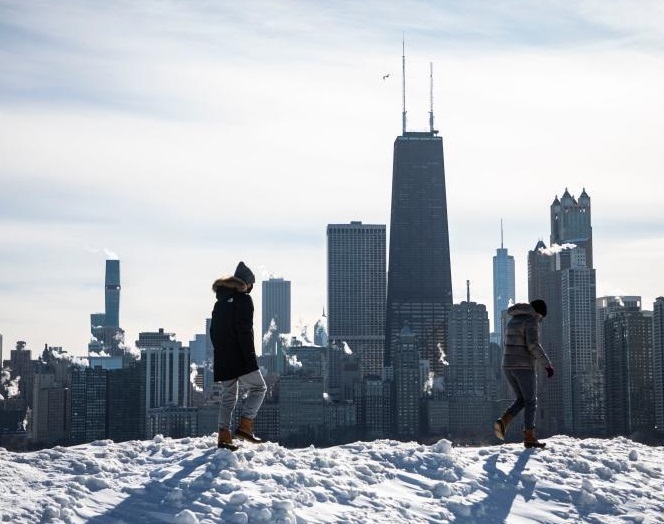 當(dāng)日,寒潮侵襲芝加哥地區(qū),風(fēng)寒指數(shù)達(dá)零下20攝氏度至零下25攝氏度。新華社發(fā)(喬爾·萊納攝)