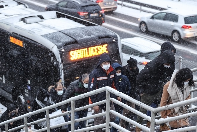 伊斯坦布爾:人們戴口罩行走在大雪中