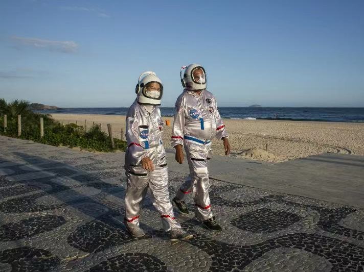 人民網(wǎng)訊 當(dāng)?shù)貢r(shí)間2021年3月20日,巴西里約熱內(nèi)盧,Tercio Galdino與妻子Alicea著太空服裝扮出行伊帕尼瑪海灘,在保護(hù)自己免受新冠感染的同時(shí)呼吁民眾加強(qiáng)防疫。