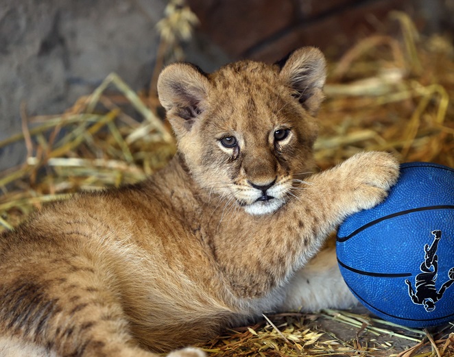 當(dāng)?shù)貢r(shí)間4月1日,土耳其伊斯坦布爾,動(dòng)物園里的兩只新生獅子寶寶亮相。(圖片來源:東方IC)