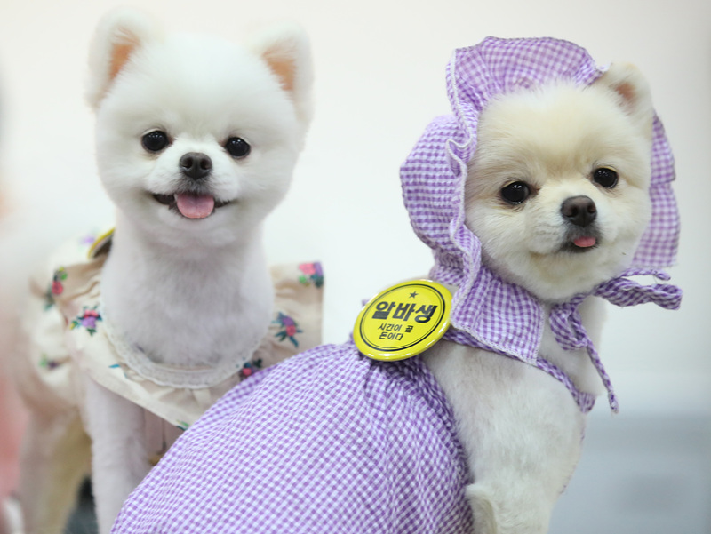 韓國(guó)高陽(yáng)市各類(lèi)狗狗亮相寵物市集 萌“翻”路人