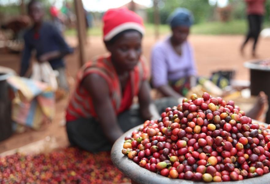 6月3日,工人在肯尼亞魯伊魯的一家咖啡園分揀咖啡豆。