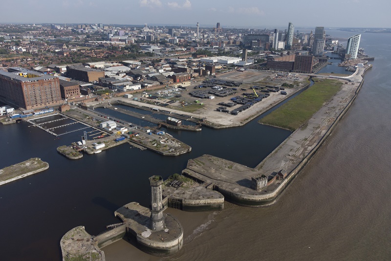 這是7月21日在英國利物浦拍攝的利物浦海上商城碼頭區(qū)(無人機(jī)照片)。當(dāng)?shù)刈闱蚓銟凡坑?jì)劃在此處興建一座現(xiàn)代化足球場。