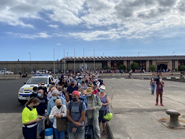 9月25日,大量民眾在西班牙拉帕爾馬島港口等待離島。