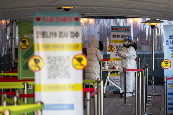 圖為1月18日拍攝的韓國首都首爾一處新冠檢測點。 新華社記者 王益亮 攝
