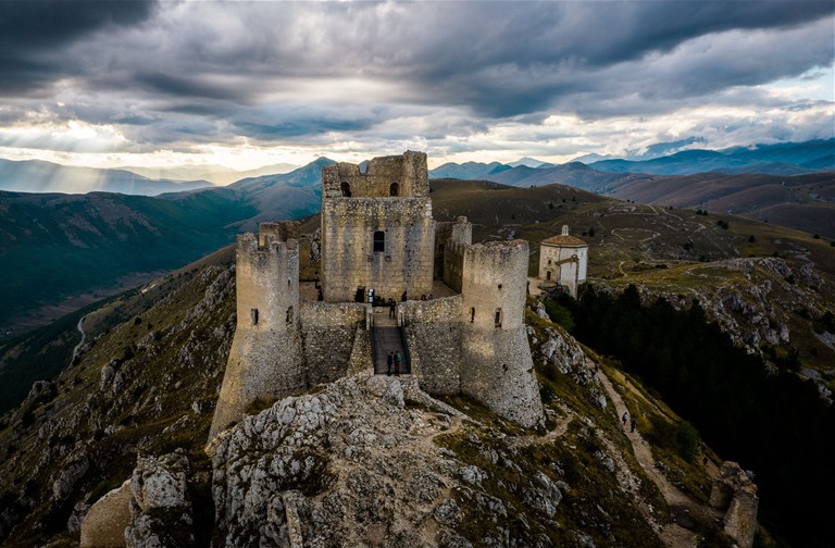 當(dāng)?shù)貢r間9月2日,意大利羅卡卡拉西奧城堡,航拍景色巍峨壯觀美麗如畫。