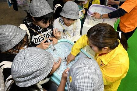 2018年12月6日,在日本東京,小學(xué)生們參觀一種環(huán)保寵物用品。這種利用產(chǎn)業(yè)廢料制成的顆粒狀材料可以吸收寵物尿液并凝聚成團,方便清理。新華社記者 華義 攝