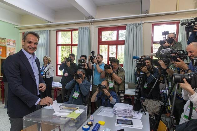 圖為5月21日,希臘總理、新民主黨領導人基里亞科斯·米佐塔基斯在雅典一處投票站投票。新華社發(fā)(馬里奧斯·羅洛斯攝)