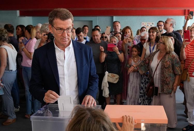 圖為23日,西班牙人民黨候選人費(fèi)霍在馬德里一處投票點(diǎn)內(nèi)投票。 新華社發(fā)(西班牙人民黨供圖)