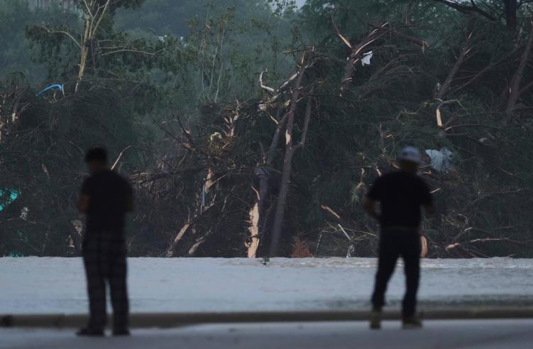 7月4日,在美國得克薩斯州克爾維爾市,人們在瓜達盧普河沿岸查看。新華社/美聯(lián)