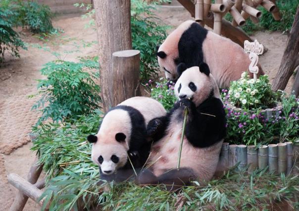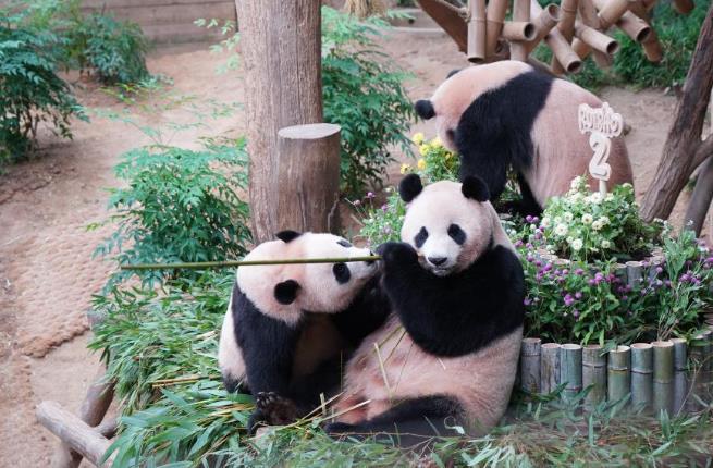 韓國愛寶樂園大熊貓“睿寶”“輝寶”慶生