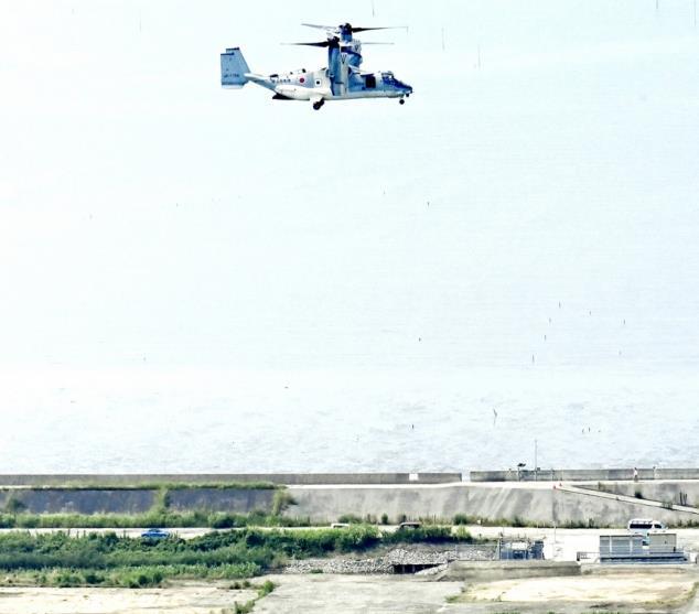 圖為當?shù)貢r間2025年7月9日,日本佐賀市,一架日本陸上自衛(wèi)隊V-22“魚鷹”運輸機抵達陸上自衛(wèi)隊新啟用的佐賀駐地。 CFP供圖