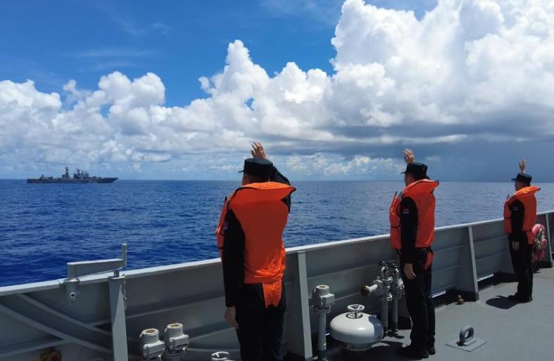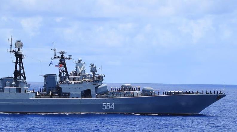 中俄“海上聯(lián)合-2025”聯(lián)合演習(xí)當(dāng)?shù)貢r(shí)間1日至5日在俄羅斯符拉迪沃斯托克附近??沼蚺e行。演習(xí)結(jié)束后,參與演習(xí)的中國(guó)海軍導(dǎo)彈驅(qū)逐艦紹興艦、綜合補(bǔ)給艦千島湖艦與俄羅斯海軍“特里布茨海軍上將”號(hào)大型反潛艦等3艘水面艦艇及2架艦載直升機(jī)組成聯(lián)合編隊(duì),位西太平洋某海域組織海上聯(lián)合巡航。