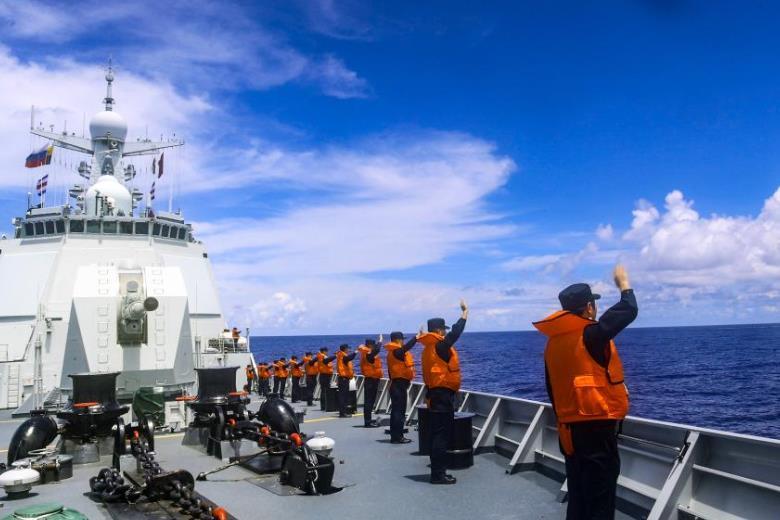 聯(lián)合巡航期間,中俄雙方密切協(xié)同、默契配合,以輪流指揮或共同指揮方式,完成聯(lián)合搜救、聯(lián)合補(bǔ)給、聯(lián)合護(hù)航、聯(lián)合防空等課目演練。