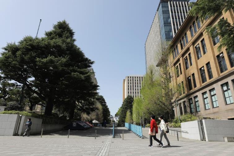 這是2021年3月31日在日本東京拍攝的早稻田大學(xué)早稻田校區(qū)正門(mén)。新華社記者杜瀟逸攝