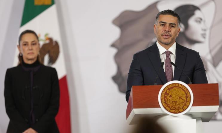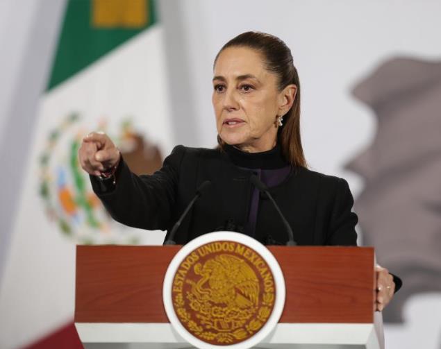 2月23日,在墨西哥首都墨西哥城,墨西哥總統(tǒng)辛鮑姆出席新聞發(fā)布會。新華社發(fā)(弗朗西斯科·卡涅多攝)