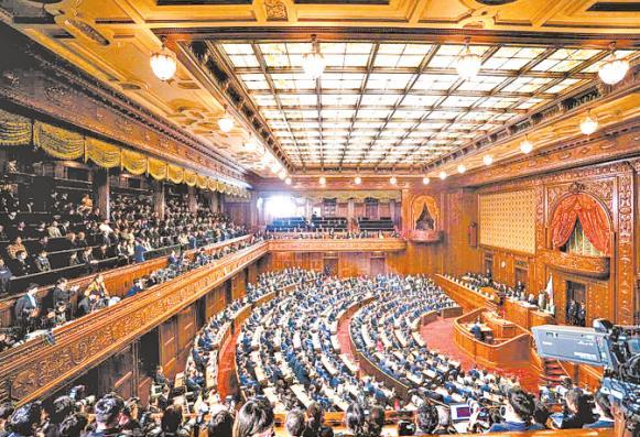 圖為2月18日在日本東京拍攝的日本國會眾議院首相指名選舉現(xiàn)場。 新華社記者 賈浩成 攝