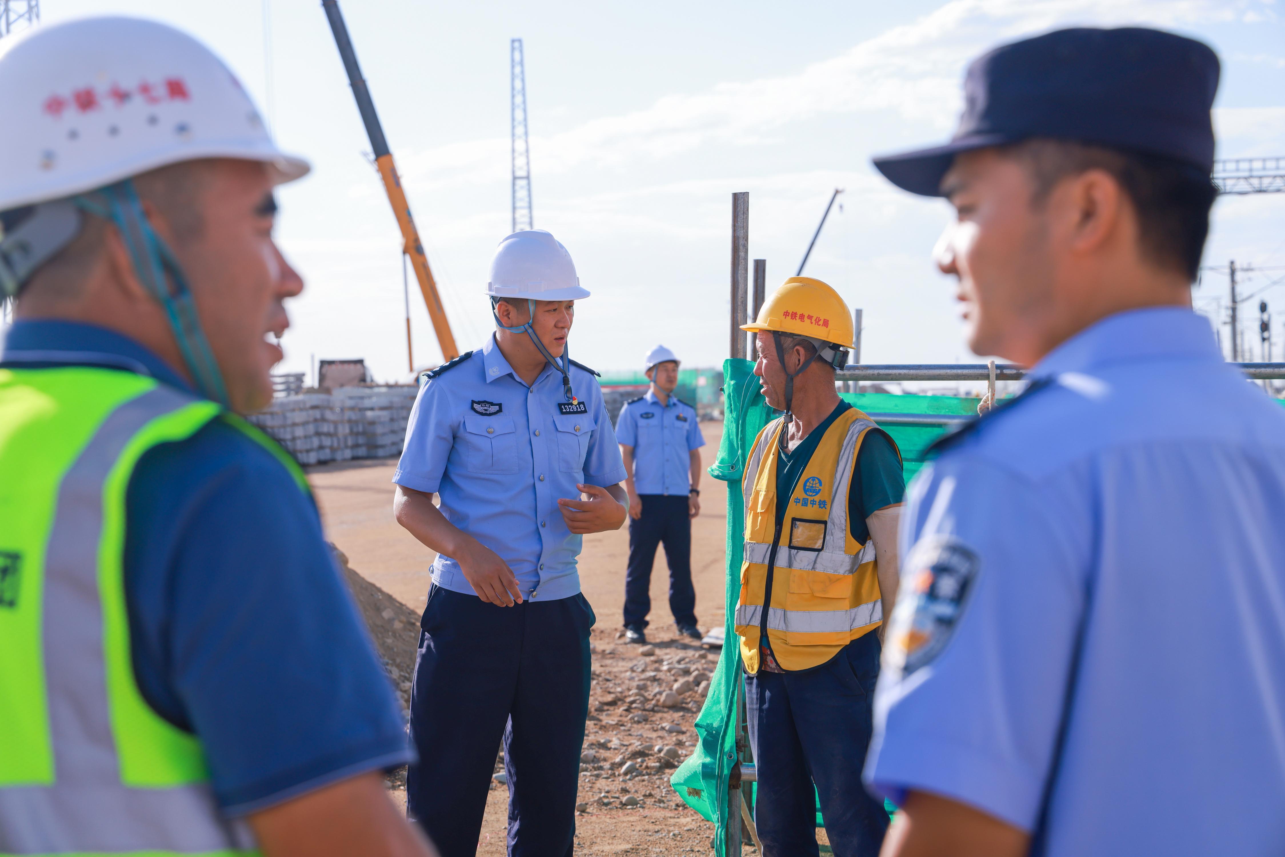 圖為8月20日,哈密公安處刑偵支隊(duì)民警在哈密東站施工現(xiàn)場開展“沉浸式”普法宣傳和安全檢查。