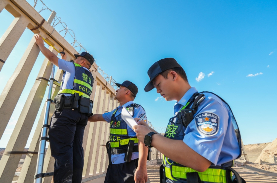 圖為8月27日,哈密公安處吐哈站派出所民警對轄區(qū)線路開展隱患排查,確保列車運(yùn)行安全暢通。