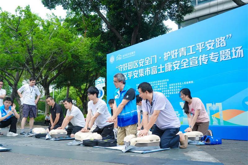 活動(dòng)現(xiàn)場,四大特色互動(dòng)環(huán)節(jié)快速點(diǎn)燃現(xiàn)場氛圍。龍華區(qū)檢察院工作人員以趣味問答形式帶領(lǐng)青工深入探索法律知識(shí);油松派出所民警結(jié)合真實(shí)案例,細(xì)致拆解電信詐騙的慣用手段與防范技巧;“心理減壓踩氣球”環(huán)節(jié)中,青工們在歡聲笑語里釋放工作壓力;深圳市小黃人應(yīng)急救護(hù)發(fā)展中心的專業(yè)講師則通過實(shí)操演示,手把手教學(xué)心肺復(fù)蘇、AED使用等急救技能,讓應(yīng)急處置知識(shí)變得通俗易懂、易學(xué)易用。