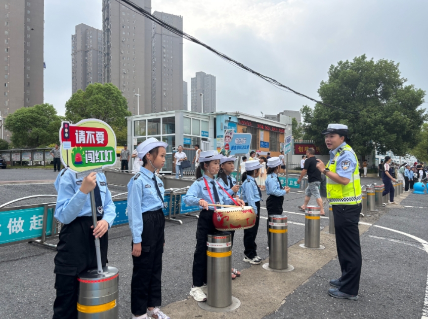 秋季開學(xué)伊始,江西省高安市公安局交管大隊組織民輔警和“少年交警隊”隊員在轄區(qū)校園門口維護秩序,充分發(fā)揮“家+校+警”機制作用,通過“小手拉大手”帶動全社會共同關(guān)注交通安全。