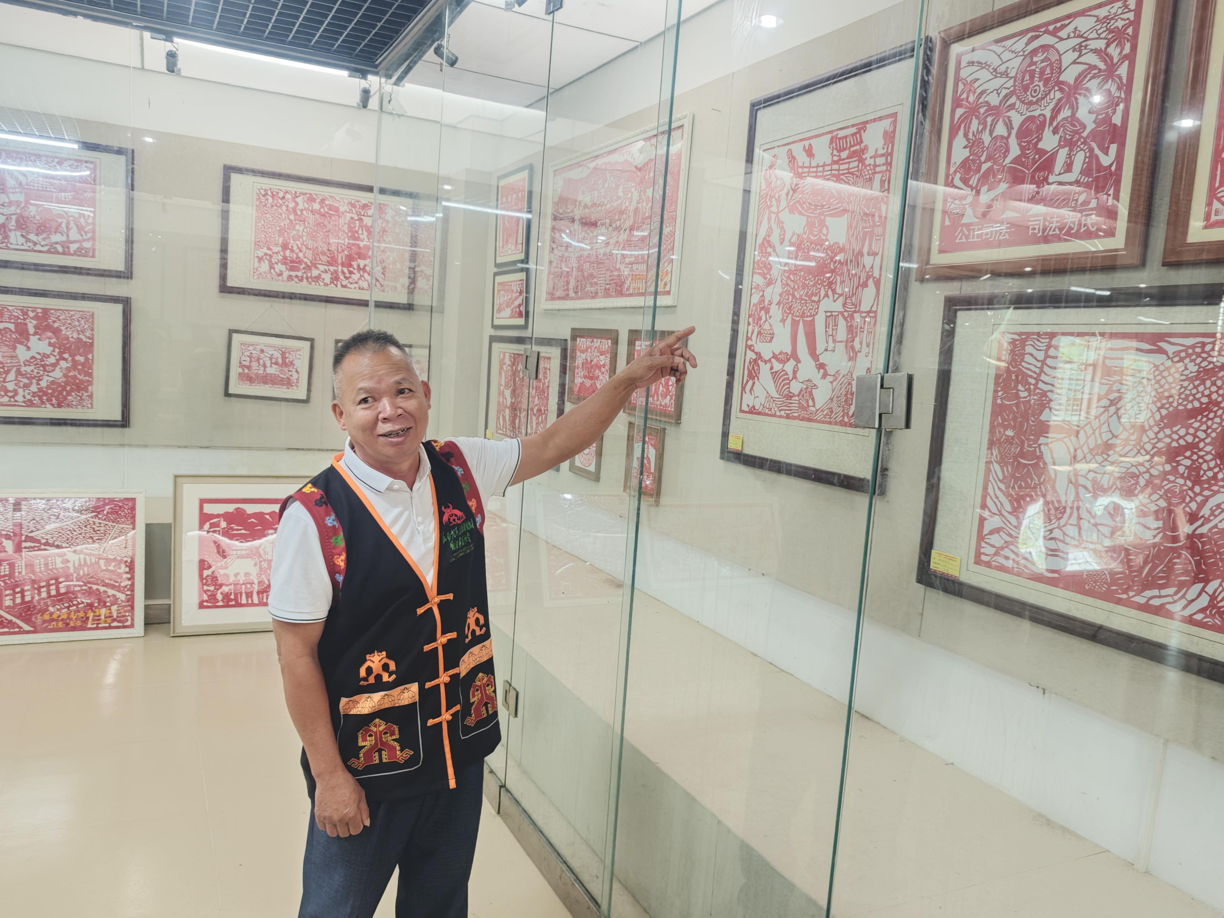 “剪紙以前大多是剪一些吉祥圖案、民族傳說(shuō)。在縣司法局的指導(dǎo)下,我開(kāi)始嘗試將法治元素融入剪紙藝術(shù),創(chuàng)作大量的法治題材剪紙作品?!贝蟀布艏埣妓囀〖?jí)傳承人林文生表示,他積極參與法治剪紙進(jìn)校園、進(jìn)鄉(xiāng)村等普法宣傳活動(dòng),讓學(xué)生和黎族村民在欣賞精美剪紙的同時(shí),接受法治文化的熏陶。