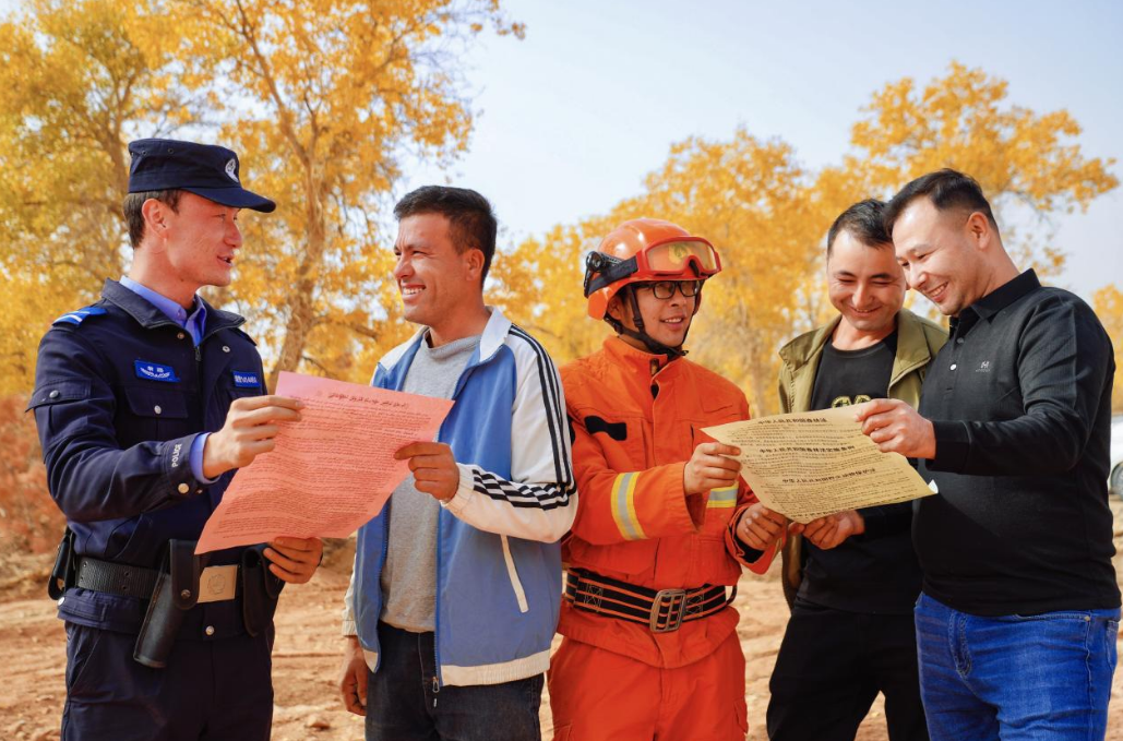 金秋十月,新疆溫宿縣共青團鎮(zhèn)薩葉科普胡楊林的6.5萬畝胡楊,由綠轉黃,披上盛裝。10月18日,備受期待的溫宿2025胡楊生態(tài)文化旅游節(jié)在這片醉人的美景中如期拉開帷幕。為確保此次活動安全、有序、順利進行,溫宿縣公安局組建了強有力的安保隊伍,為八方來客營造一個平安、祥和、歡樂的旅游環(huán)境。在全力維護秩序、保障安全的同時,溫宿公安將服務群眾與普法宣傳融入安保工作之中,成為了金色胡楊林中另一道亮麗的“風景線”。