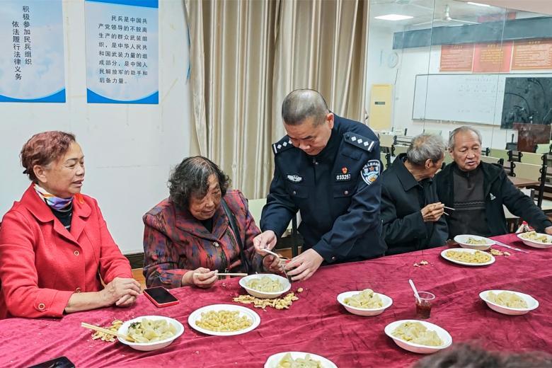 圖為邵奇(中)在重陽(yáng)節(jié)前夕為轄區(qū)獨(dú)居老人辦餃子宴?!?/span>