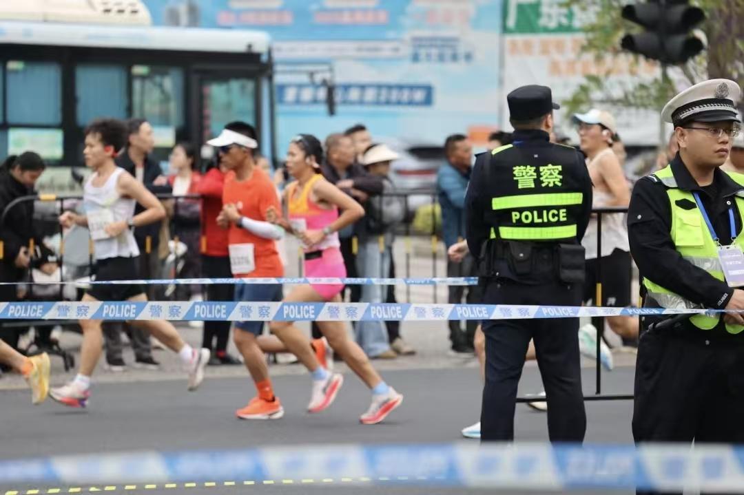 賽事過程中,民警們時(shí)刻關(guān)注選手狀態(tài),對(duì)突發(fā)抽筋、暈倒等情況的參賽選手第一時(shí)間實(shí)施緊急救助,以“溫情藍(lán)”守護(hù)每一位跑者的安全。