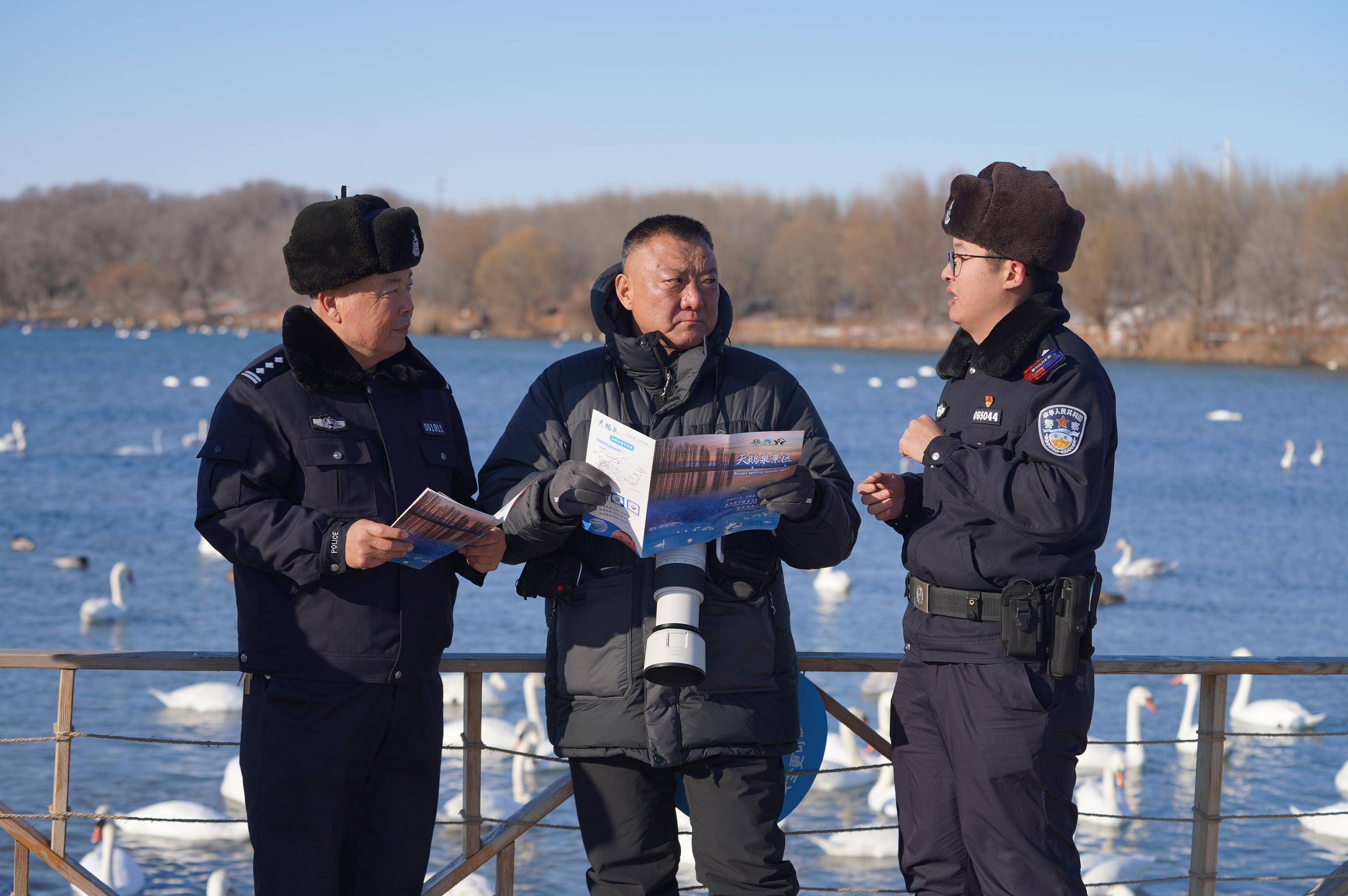 “天鵝警護(hù)隊(duì)”并非單純執(zhí)行警務(wù),日常工作中,隊(duì)員們?cè)陂_(kāi)展治安巡邏、處理游客求助的同時(shí),格外注重對(duì)天鵝等候鳥及其棲息環(huán)境的巡護(hù)。勸阻驚擾候鳥行為、撿拾湖區(qū)垃圾、觀察記錄鳥類活動(dòng)狀況、向游客宣傳生態(tài)保護(hù)知識(shí),已成為他們的常規(guī)任務(wù)。