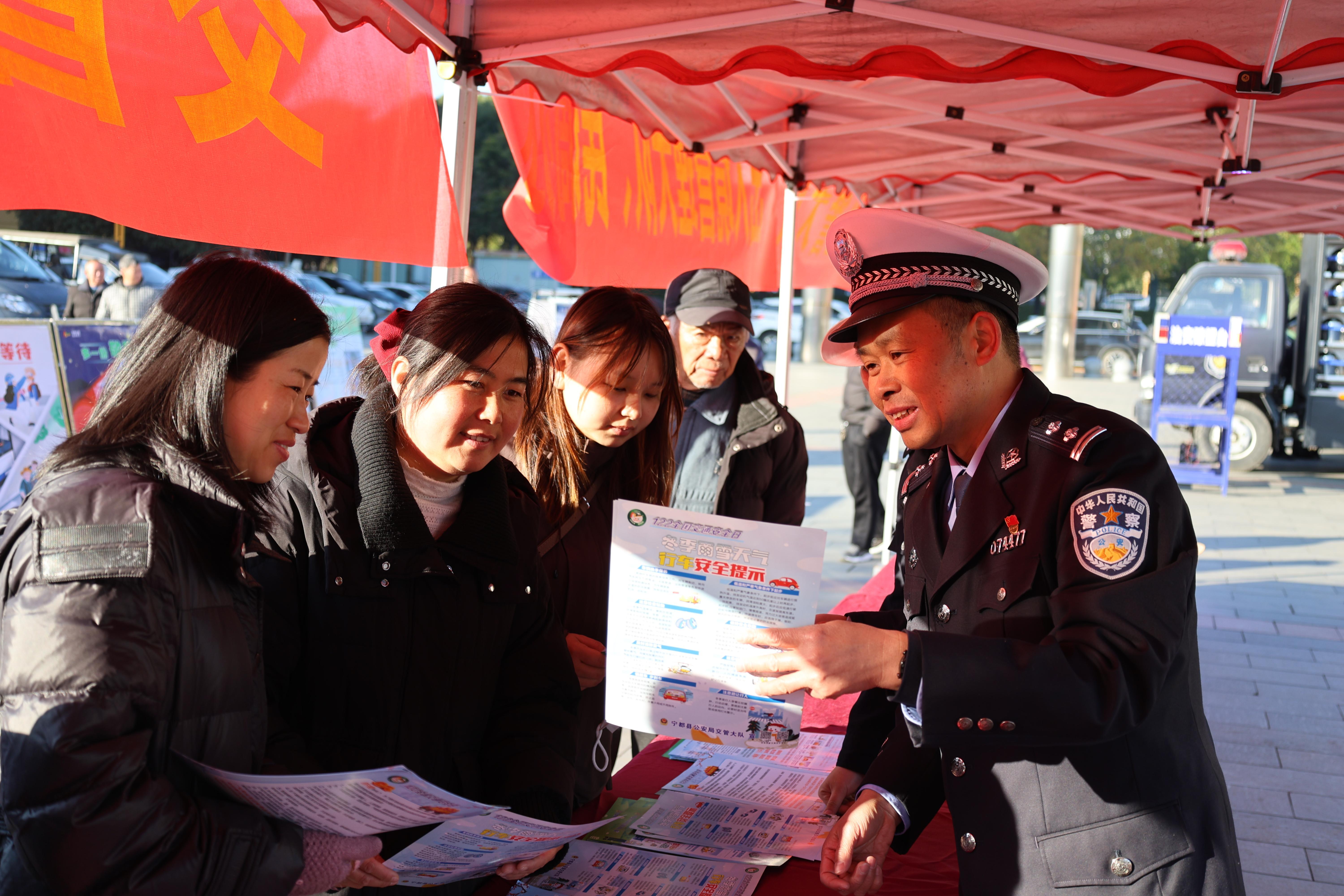 圖為1月9日上午,民警在活動(dòng)現(xiàn)場向群眾宣傳交通安全知識(shí)。