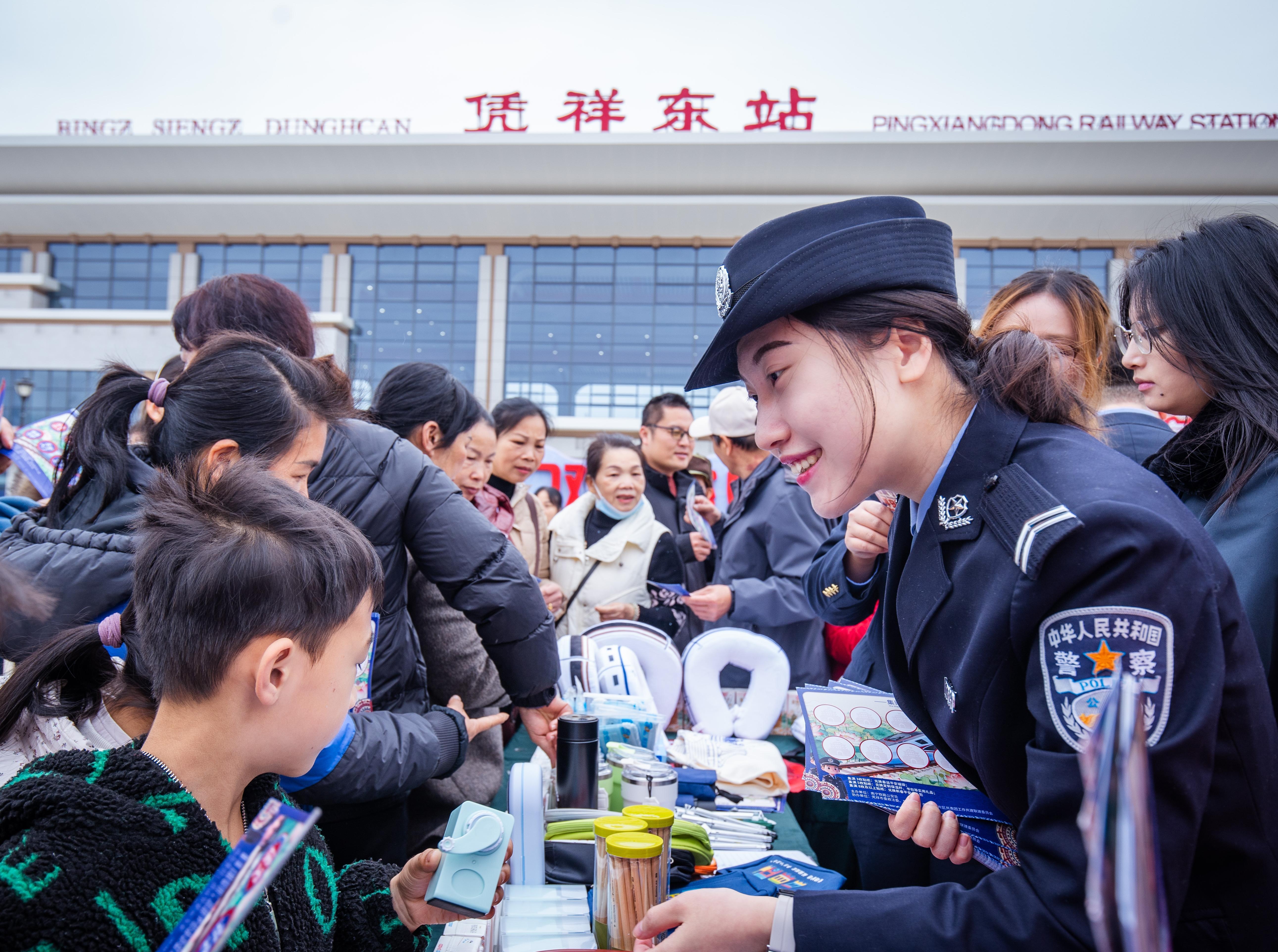 近日,南寧鐵路公安局南寧公安處在憑祥東站站前廣場(chǎng)開展鐵路安全宣傳,通過趣味有獎(jiǎng)競答向旅客普及出行安全知識(shí),護(hù)航春運(yùn)平安旅途。
