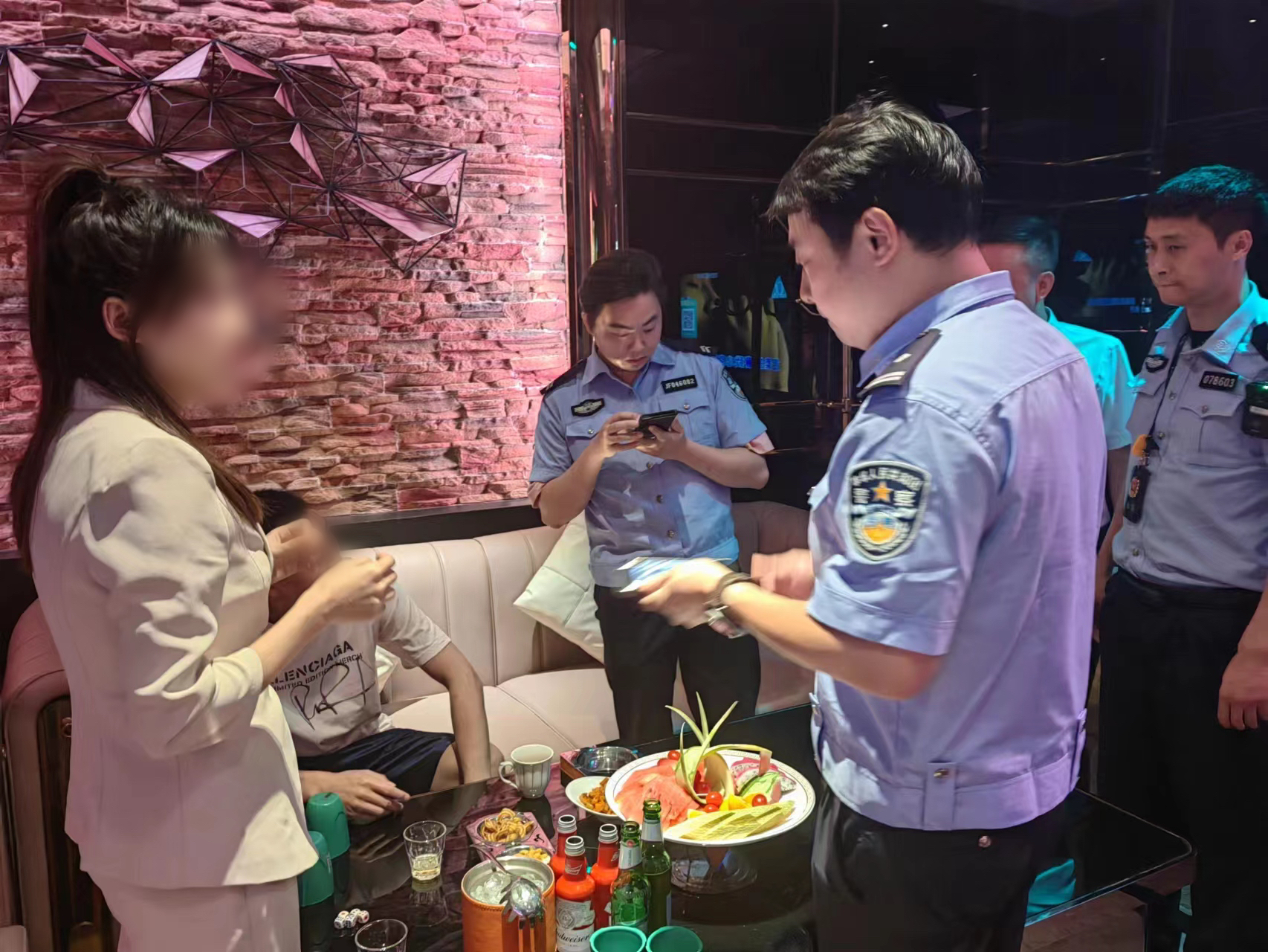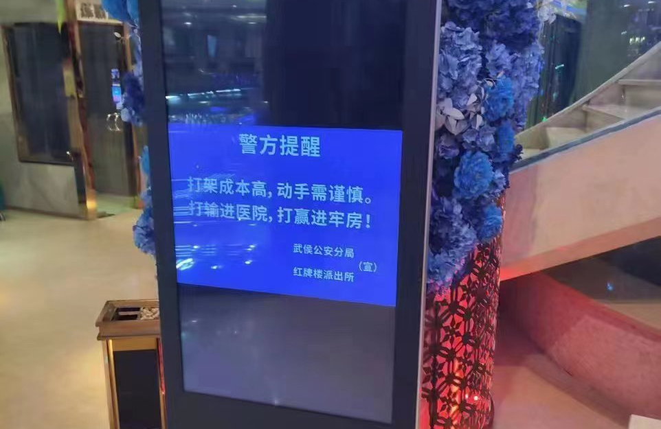 截至目前,紅牌樓派出所的此輪宣防工作已經(jīng)覆蓋了轄區(qū)內(nèi)237家娛樂場所,甚至所有KTV的開機畫面都已經(jīng)換成了“嚴禁打架斗毆”等相關內(nèi)容,提醒消費者文明飲酒、理性止紛,提升市民群眾的守法自覺和防護意識,為平安蓉城加碼助力。