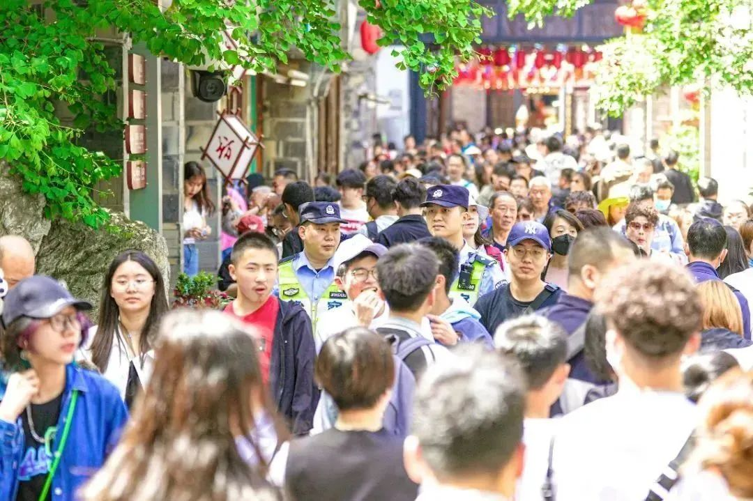 今年“五一”小長(zhǎng)假期間,正在錦里景區(qū)巡邏的民警高茂森遇到群眾焦急求助:自己和5歲兒子在戲臺(tái)附近的小吃攤被人流擠散了。