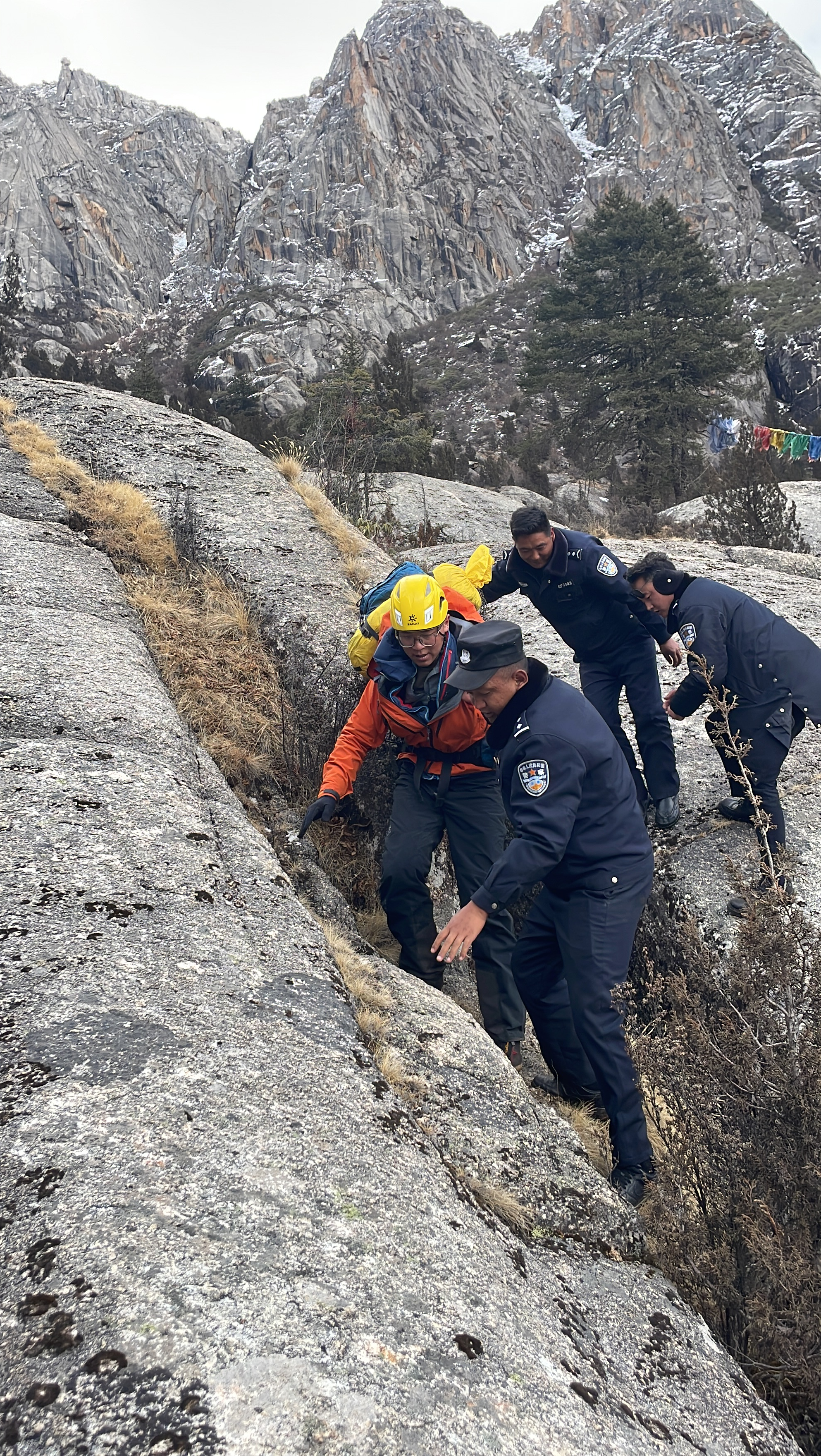 正值嚴(yán)寒時(shí)節(jié),由于擔(dān)心發(fā)生不測(cè),隨后,由傲喜繞教導(dǎo)員帶隊(duì),措拉派出所抽派3名民輔警連續(xù)兩日前往措普溝景區(qū),會(huì)同景區(qū)工作人員一道在海拔4500米的山上進(jìn)行搜尋。12月10日,冒著零下十幾度的嚴(yán)寒和凜冽的寒風(fēng),耳朵都幾乎被凍僵,經(jīng)過(guò)54小時(shí)的攀爬搜尋,最終在海拔4500多米的扎金甲博山背面終于發(fā)現(xiàn)了4名失聯(lián)游客。