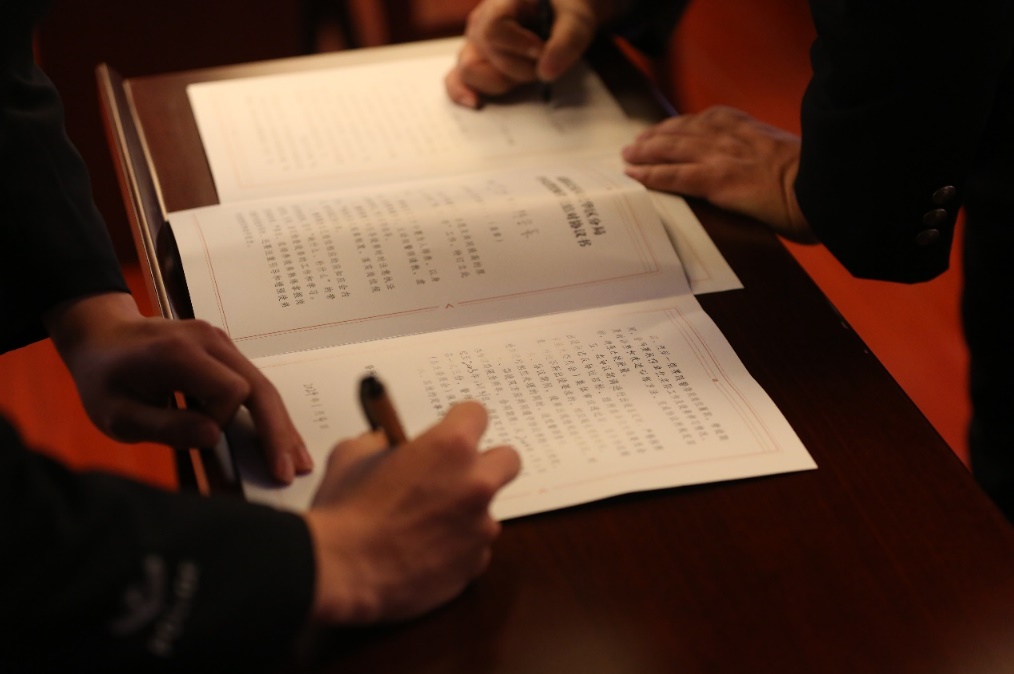 兩對(duì)師徒代表依次上臺(tái)簽訂《青年民警優(yōu)師帶徒結(jié)對(duì)協(xié)議書》,兩對(duì)師徒代表依次上臺(tái)作了表態(tài)發(fā)言。
